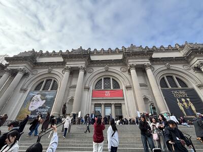 ニューヨーク到着後は、メトロポリタン美術館(MET)を訪問しました。世界最大級の美術館として知られ、古代エジプトから現代美術まで、時代も地域も超えた作品が並びます。広大な館内を前に、「全部は見きれないね」と笑い合いながらも、それぞれが興味のある展示に足を運び、自分なりの視点で鑑賞していました。研修序盤なら「どこ見ればいいの?」と戸惑っていた生徒たちが、「私はここ見てくるね」と自然に行動している姿に、小さな自立の芽を感じました。続いて訪れたロックフェラーセンターでは、クリスマスツリーを見学しました。世界中から集まった観光客で周辺は大混雑。それでも「人多すぎ!」と笑いながら、人の流れを読み、仲間同士で声を掛け合って進む姿は頼もしいものです。少し前なら不安で立ち止まっていたかもしれませんが、今はこの“カオス”すら楽しめる余裕がありました。