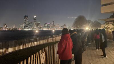 夕食後はタイムズスクエアで自由時間。無数のネオン、巨大な広告、観光客の波。まさにニューヨークらしい光景の中、生徒たちは思い思いに街を満喫しました。M&M’sやハーシーズ、ディズニーショップを巡る生徒、少し疲れてホテルのラウンジで休憩する生徒。それぞれが「自分のペース」を選べるようになっていることも、この研修での成長の一つです。なお、マリオットのラウンジはクリスマス仕様で、生徒以上に引率者のテンションが上がっていたかもしれません。続いてバッテリーパークから自由の女神像を遠望しました。夜景の中に小さく浮かぶ姿でしたが、「あれが自由の女神…」と静かに見つめる表情。冷たい海風に身を縮めながらも、ここまで来た自分たちを、どこか誇らしげに感じているようにも見えました。その後、ブルックリンブリッジを車窓から眺めながらJFK空港へ向かいます。