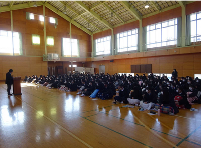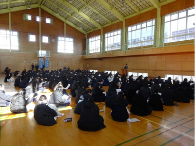 本日1/16(金)、3年生は第2体育館で共通テスト激励会を行いました。