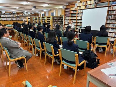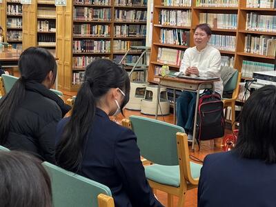 今年度第3回目の「おしゃべりの会」は、ぐんまちゃんの作者である中嶋史子さんをお招きしました。ぐんまちゃんが作られた経緯やぐんまちゃんに込められた意味(表情や帽子・服の色など)の解説はもちろん、中嶋さんご自身の高校生から現在に至るまでの経歴もお話してくださいました。中嶋さんが渋女生にとって尊敬したい女性として映ったのは間違いないのですが、大変気さくなお人柄ゆえに生徒が会の終了後もついついお話をお聞きし、個別に対応する時間も作ってくださいました。渋女生にとって忘れられないひと時となったと思います。お忙しいところ本校にお越しいただき、本当にありがとうございました。