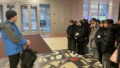 最後は MIT の象徴 Great Dome 前で集合写真。風格ある建物に囲まれた瞬間、生徒からは自然と「これが…」というため息。建物を移動する際中にも長野さんへの質問は続きます。将来の選択、勉強方法、失敗との向き合い方など話題が尽きず、長野さんは一つ一つ丁寧に答えてくださいました。「好きなことを、好きだと言えるまま大切にしていい。続けたいことを続けることが大切。」という言葉は、胸に刺さった生徒も多かったのではないでしょうか。ツアーが終わる頃には、目の輝きがはっきりと変わっていました。
