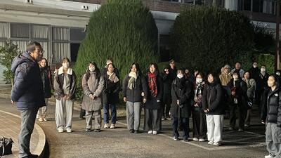 まだ夜の名残が濃く残る早朝5時半。冷えた空気の中、渋川女子高校の生徒24名が学校に集まりました。辺りは真っ暗なのに、保護者の皆さまは大勢お越しくださり、この旅立ちを温かく見守ってくださいました。出発式では先生より「この研修では、自分から動くことが大切。自分から動かないと自分を変えることはできない」というメッセージをいただきました。この研修は、単なるホームステイ研修でも語学研修でもありません。10日間の活動を通してグローバルな視点と行動力を身に付けるよう挑戦を繰り返す研修です。生徒たちは静かに、しかし確かな緊張と期待を胸に刻んだ様子でした。